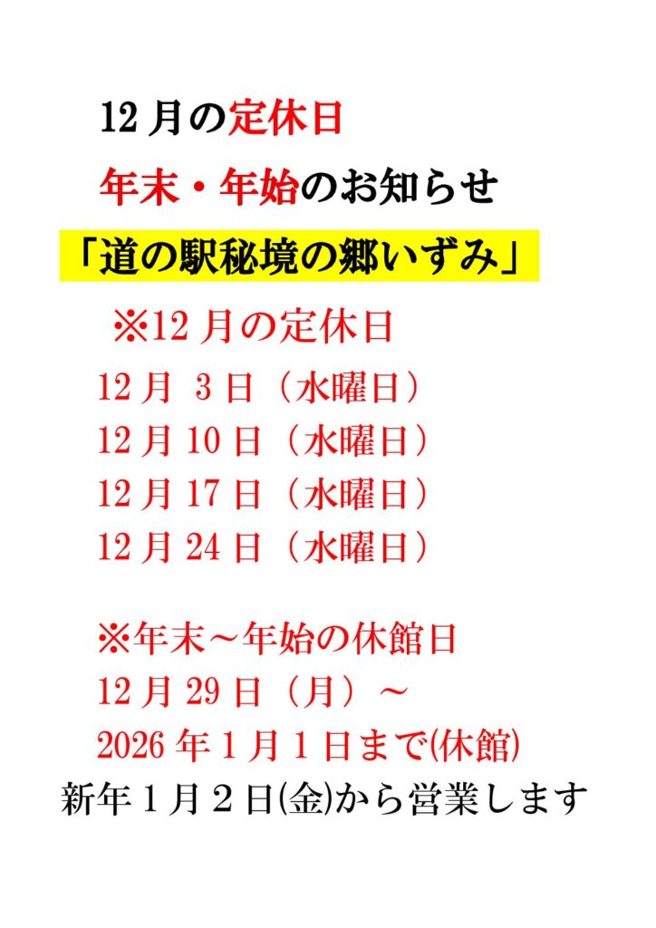 toppage 2022.12.162025.10.16 九州山地の山々に囲まれた道の駅季節の味とジビエが楽しめるお食事処「滋味健丈 炉丹」公式通販サイト リニューアルオープン地元の特産品、山の幸をご紹介人気の隠れ里の柚子こしょうシリーズ 地産食材を使った美味しいお食事 お食事処「炉丹」 泉町の特産品をお土産に 特産品ショップ「森の恵み」 会議やイベントに会場をお貸しします 貸会場情報 お知らせ&イベント 道の駅巡り☆とくとくコラボキャンペーン!2025-12-01 12月の定休日、年末・年始のお知らせ2025-12-01 『お鍋いたします』!2025-11-29 氷川ダム・道の駅3駅コラボ‼2025-11-06 レストラン特別メニューカレンダー2025-10-27 「いずみ茶」いかがですか‼2025-08-01 オンラインショップ